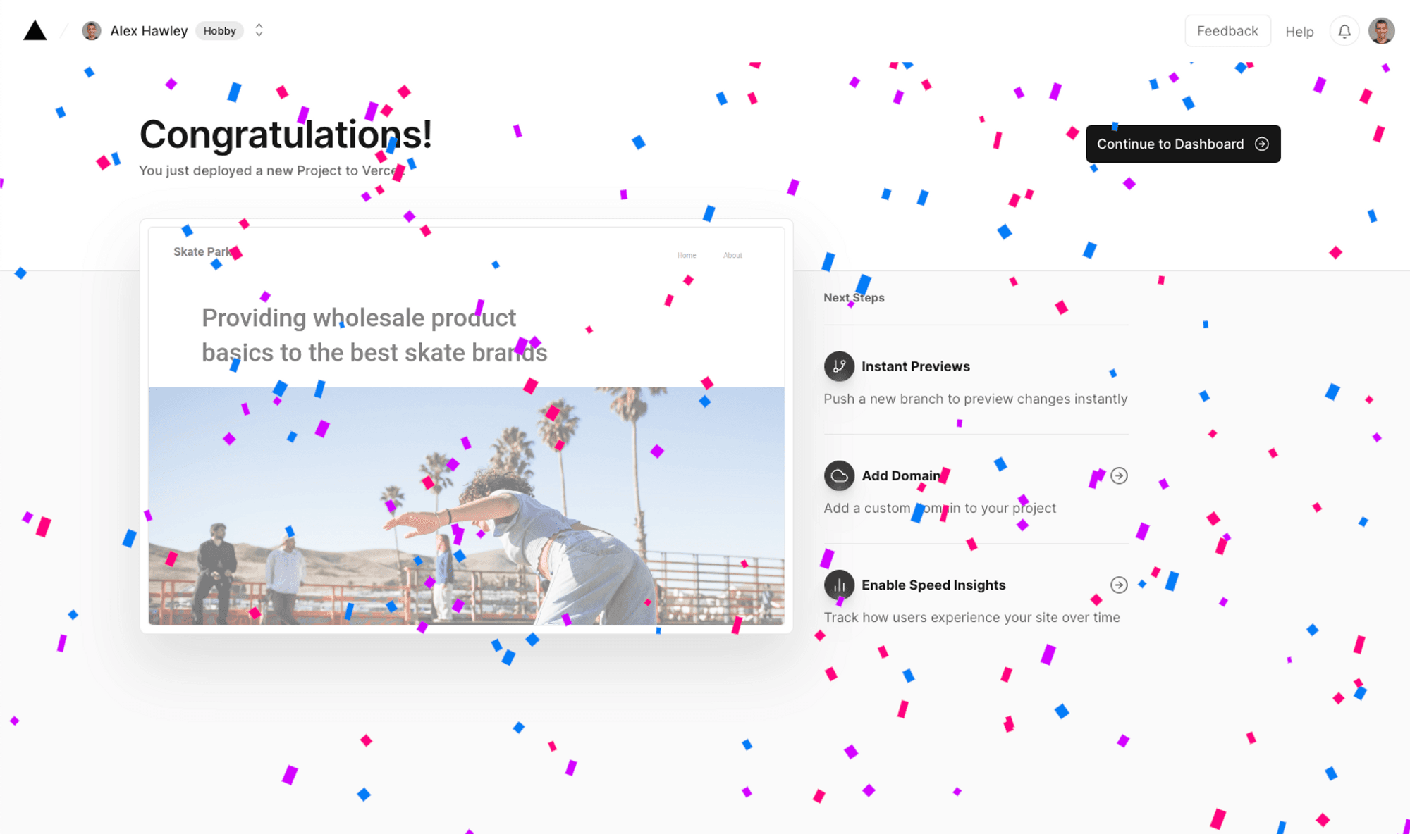 Log in to your Vercel account (or create one) and import your project into Vercel using the import flow.