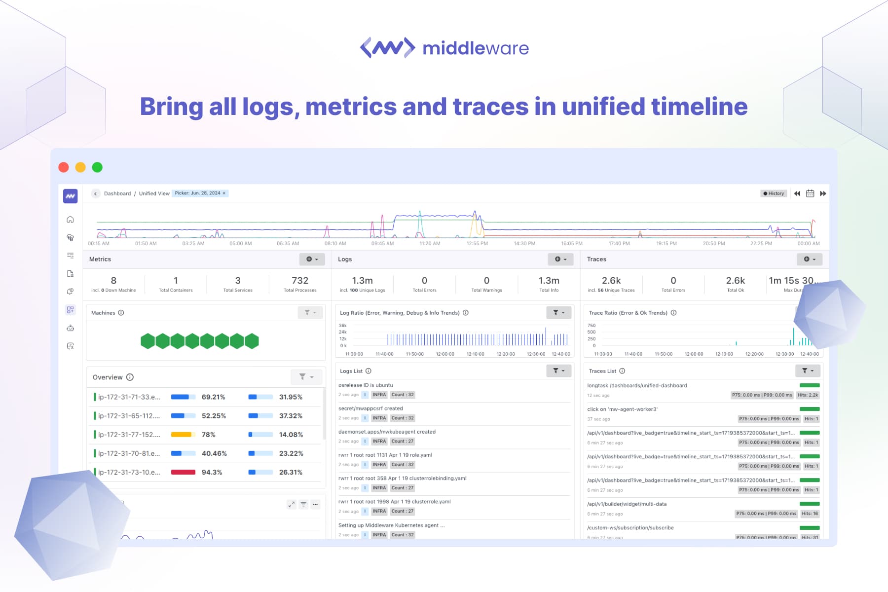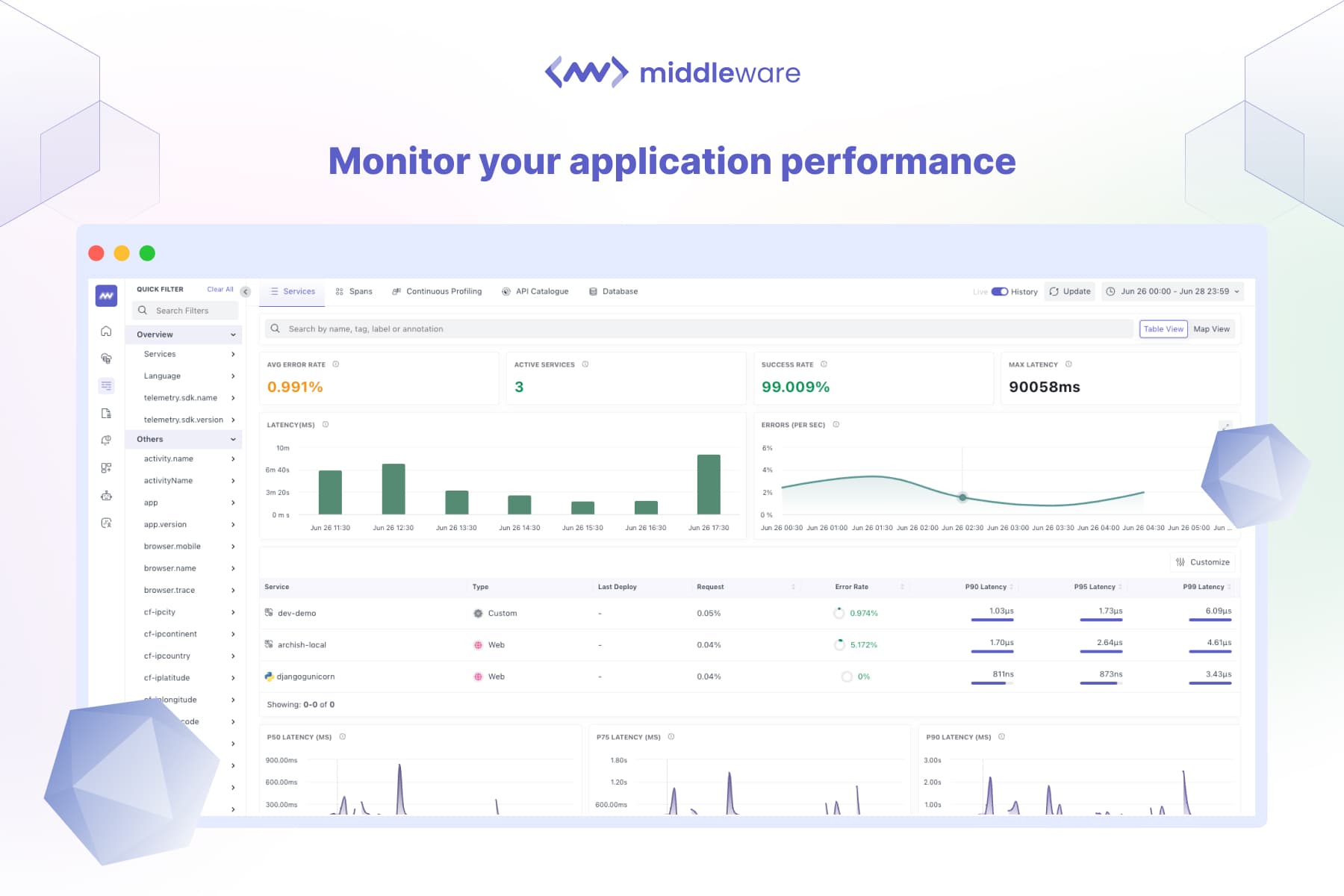 Middleware enables developers to easily monitor and analyze log and trace data generated on Vercel, gain insights into their applications, and proactively address potential issues. This Integration offers a robust APM solution through a unified dashboard, streamlining real-time and synthetic monitoring.