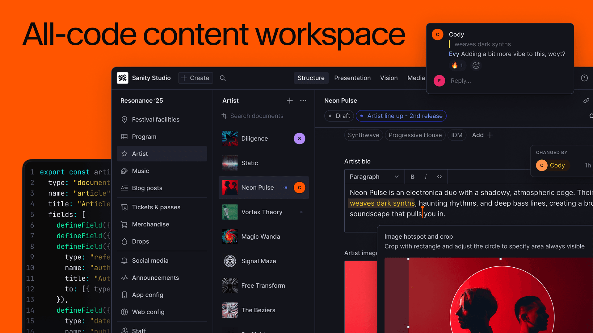 npm create sanity@latestStudio deploys alongside your app or to Sanity's hosting. Content updates flow to your frontend in real-time either way.