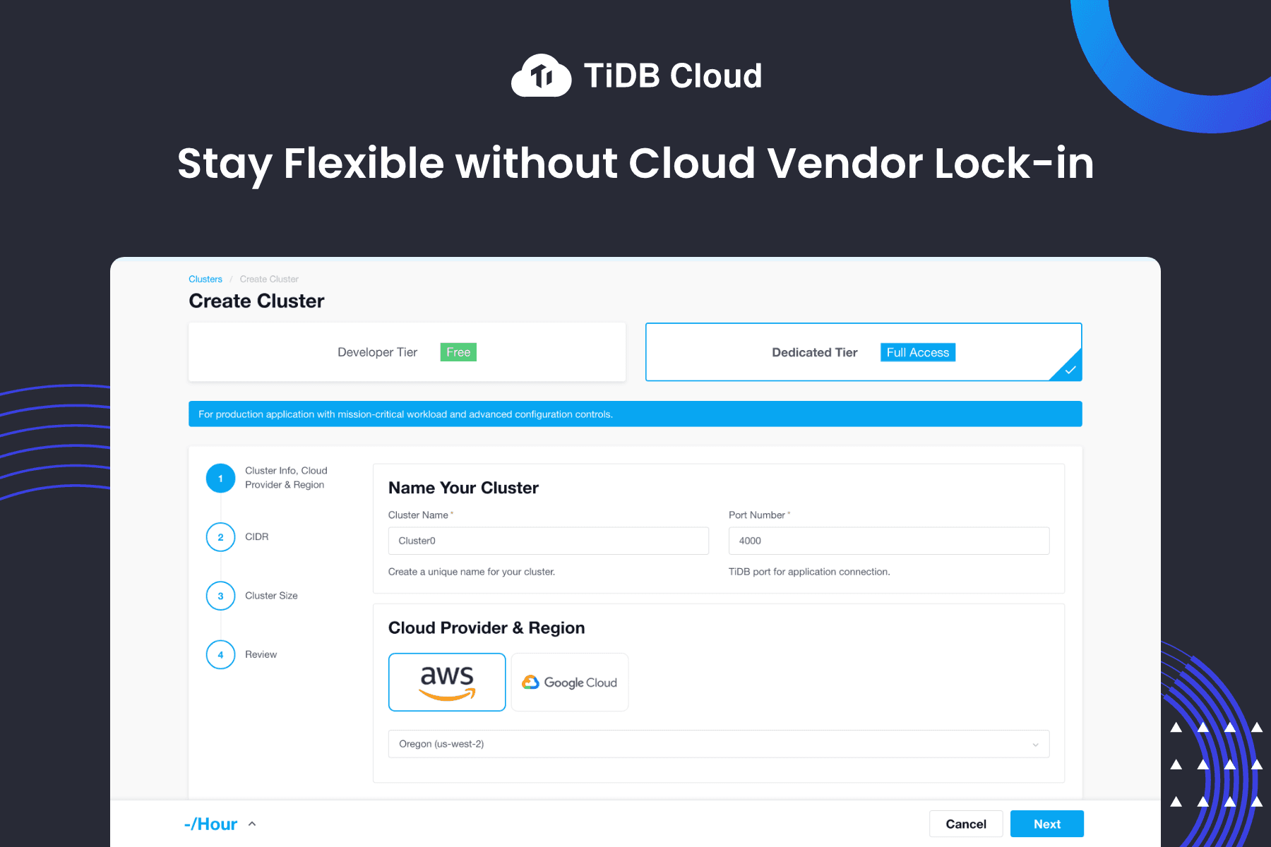 TiDB Cloud offers TiDB Serverless built for modern application development. TiDB Serverless is a fully-managed, autonomous DBaaS with split-second cluster provisioning and consumption-based pricing.